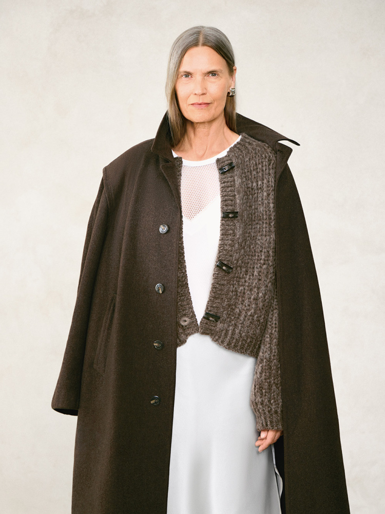 Chunky Jacket i Fritidsgarn og Kos – en varm og myk jakke i halvpatent som passer perfekt som ytterjakke på kjølige dager. Strikkes ovenfra og ned med én tråd av hver kvalitet og har klassiske detaljer som raglanfelling og duffelcoat-knapper. Et lunt plagg som både er praktisk og stilig.