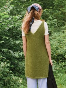 Meadow Dress i dobbel tråd Chunky Ballerina – en nybegynnervennlig og kjappstrikket kjole som kan lages ensfarget eller med striper. Strikkes ovenfra og ned med fine v-halsdetaljer og et lett, svingende skjørt. Like fin alene som over en bukse.