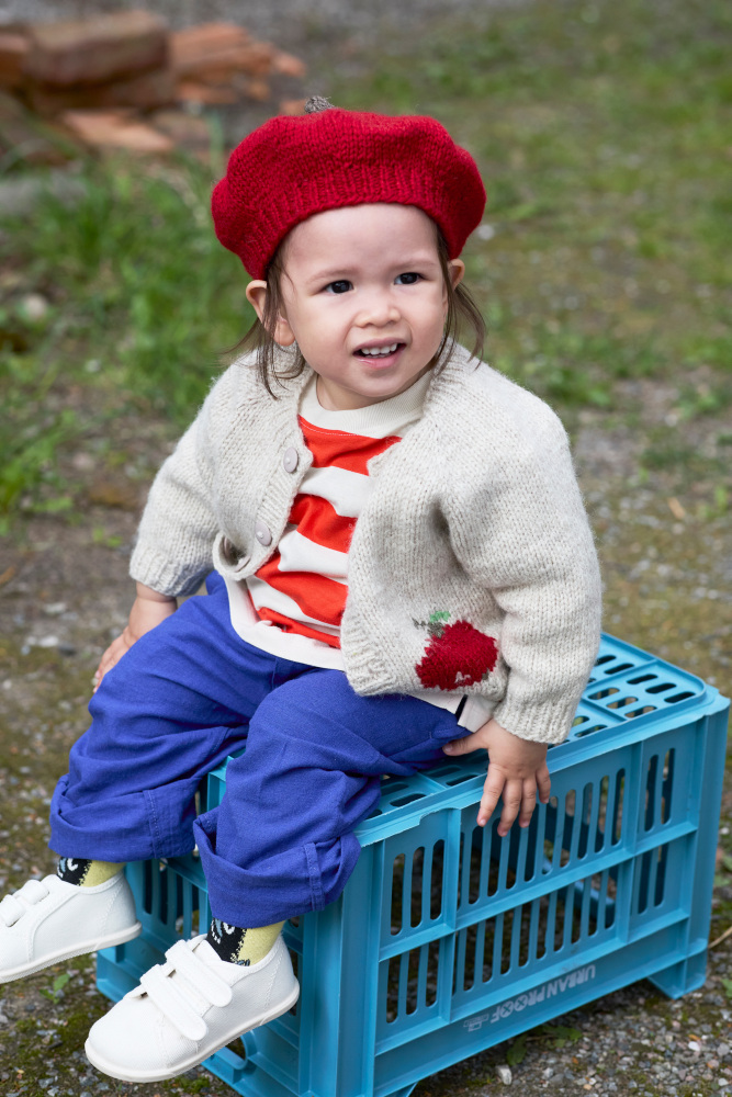 Luen strikkes rundt i glattstrikk, fra hodeåpningen til toppen. Den har en kant i 1x1 ribb rundt hodeåpningen og en «stilk» på toppen med et strikket blad. Luen formes ved først å øke masker jevnt ut og deretter felle masker jevnt inn. Luen avsluttes med en stilk strikket rundt. Til slutt strikkes et blad frem og tilbake, som sys fast ved stilken.