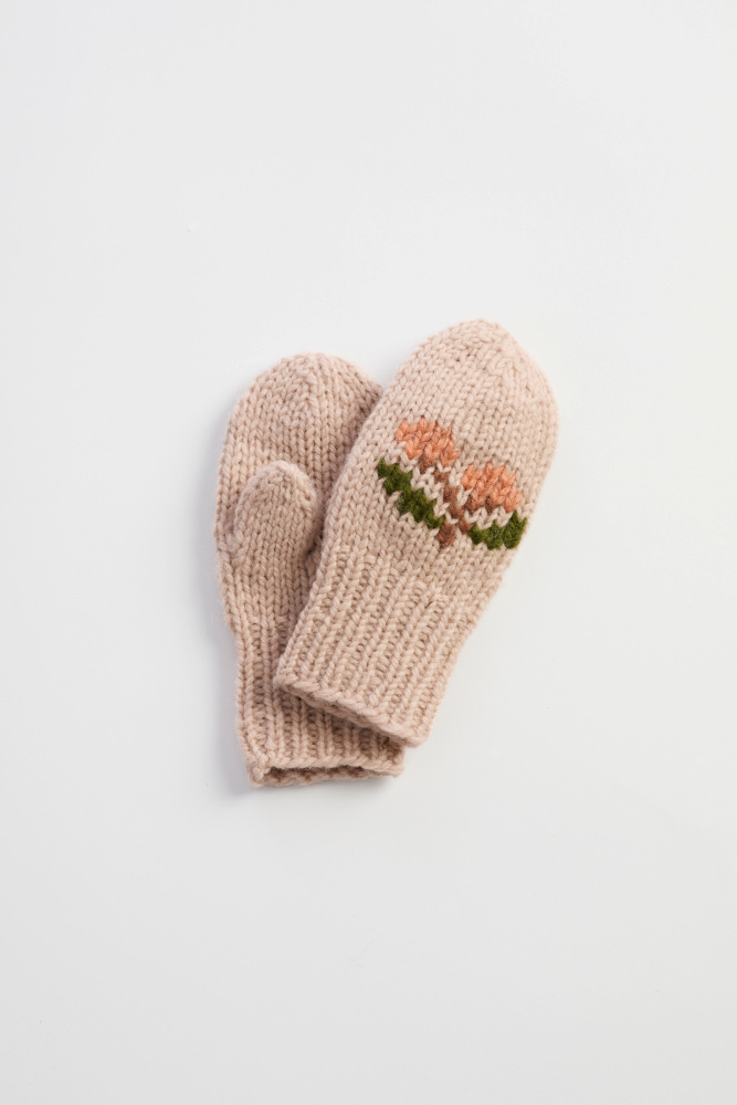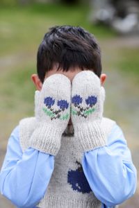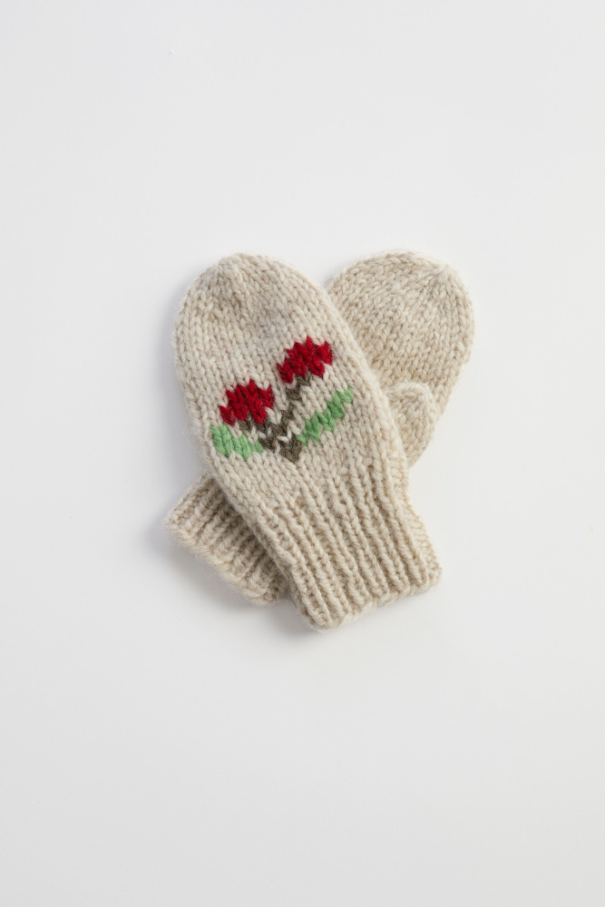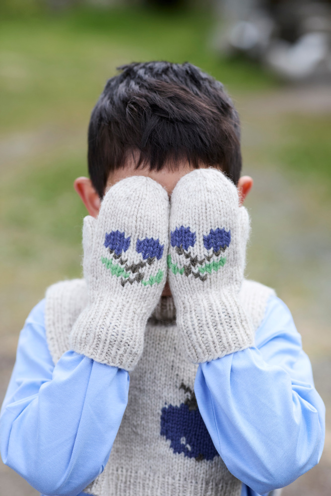 Kirsebærvotter er et par enkle votter med søte broderte kirsebær. Vottene strikkes ensfarget fra skaftet og ut til tuppen. Skaftet strikkes i ribbestrikk, mens resten av votten strikkes i glattstrikk. Tommelen lages ved at det felles og legges opp nye masker til et tommelhull.