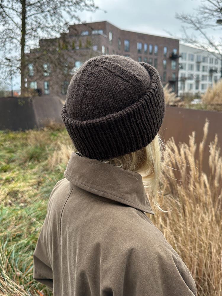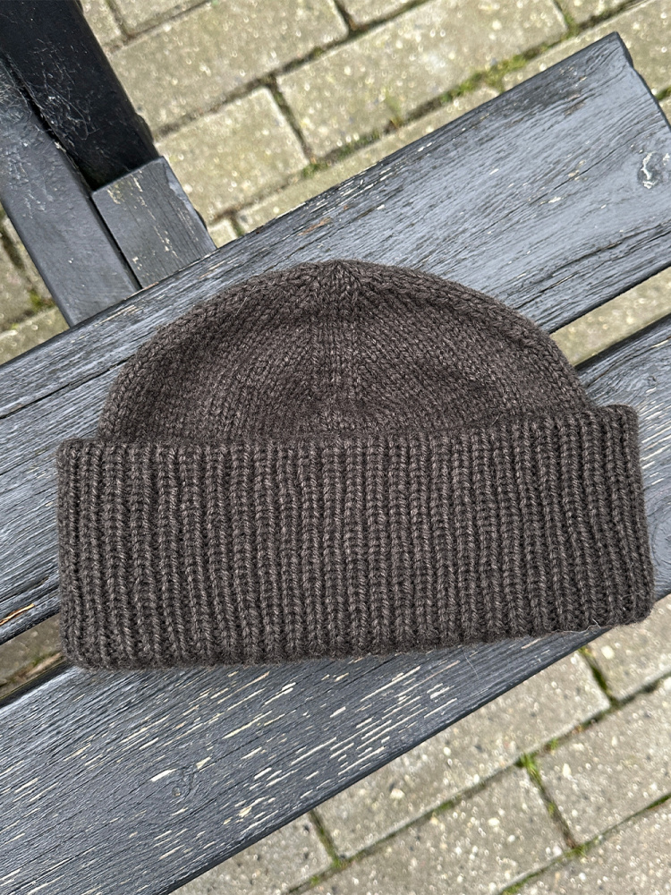 Terrazzo Lue strikkes nedenfra og opp, først i ribb og deretter i glattstrikk. Den oppbrettede vrangbord strikkes ned. Det felles i toppen av luen.